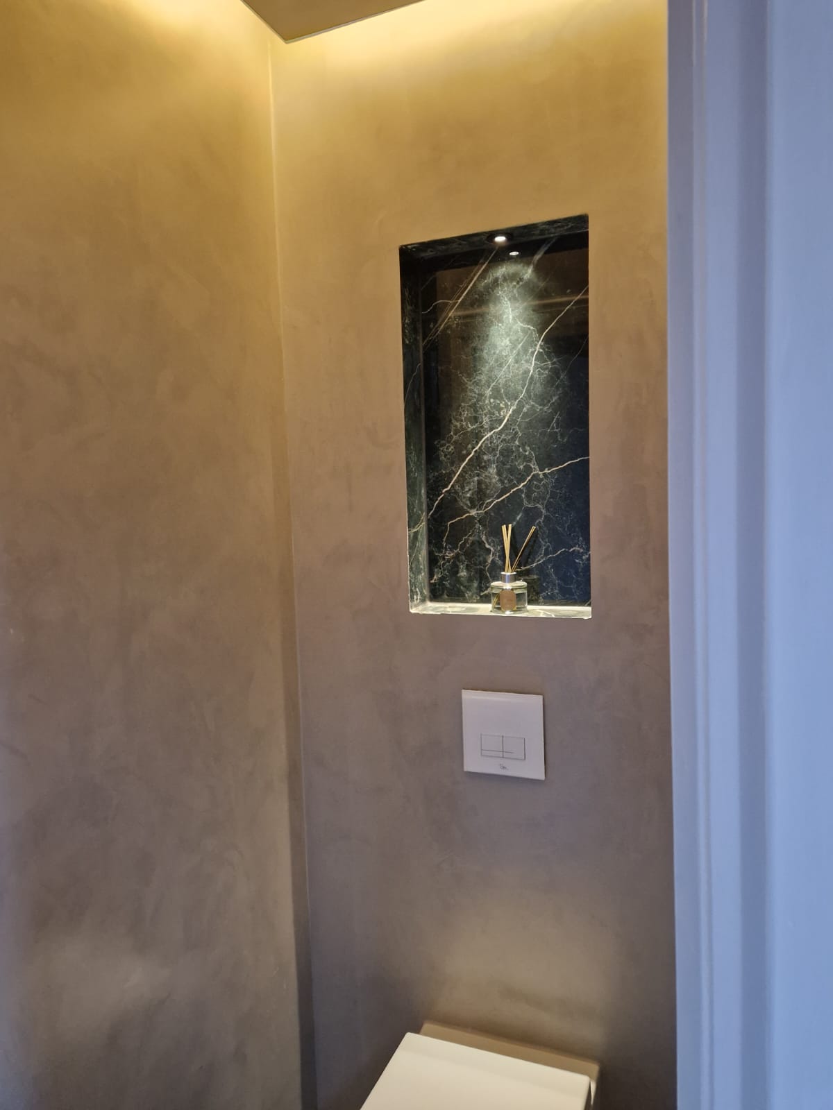 • Cementgebonden stucwerk – Sterk en vochtbestendig, ideaal voor badkamers en buitengevels.